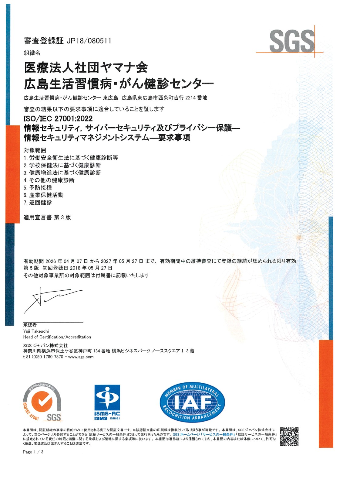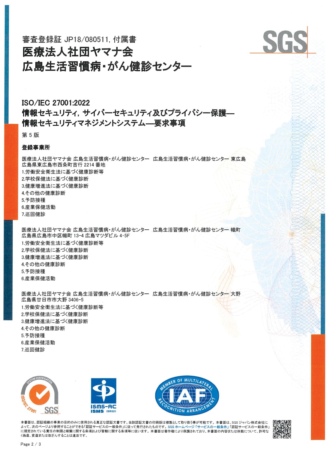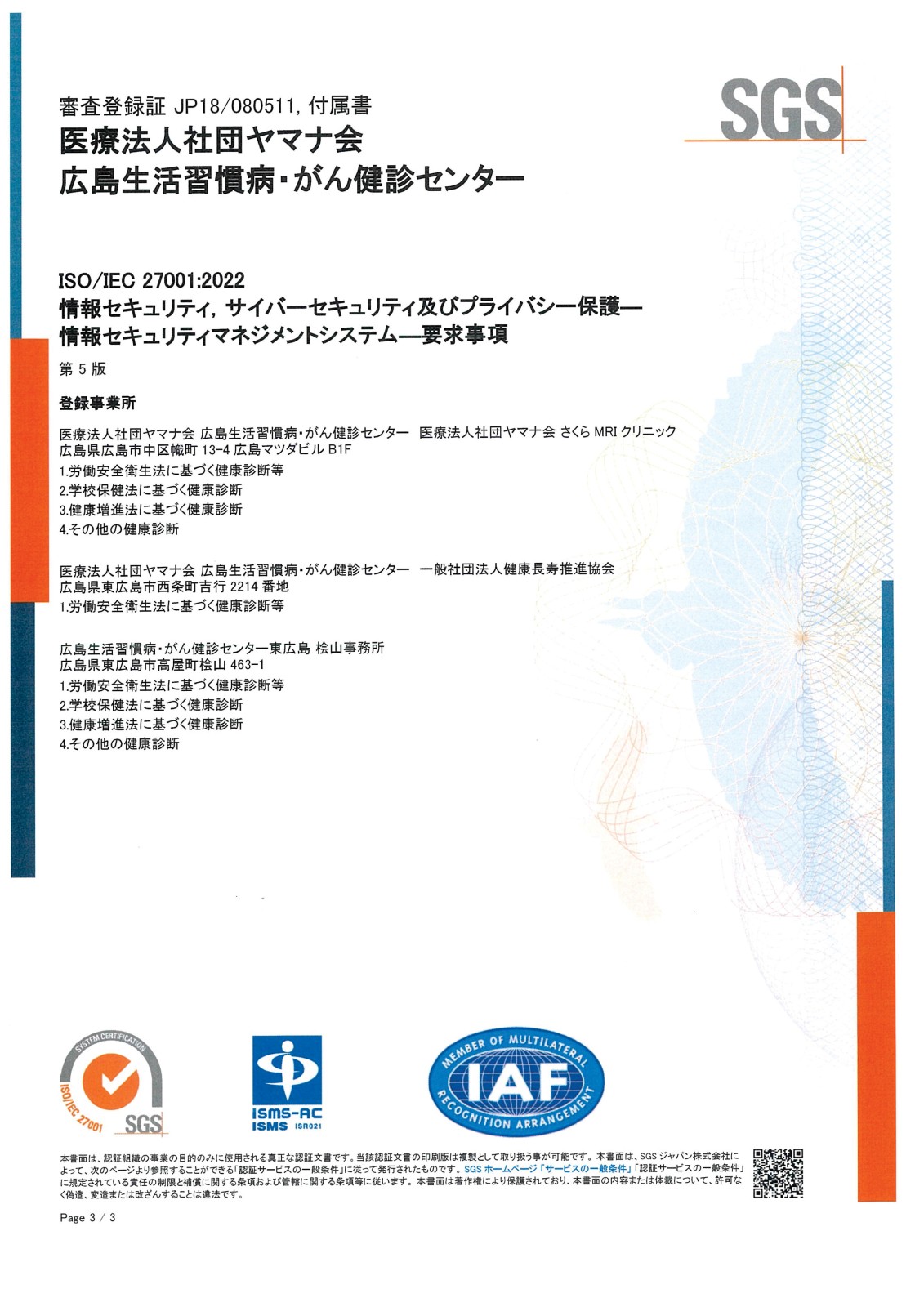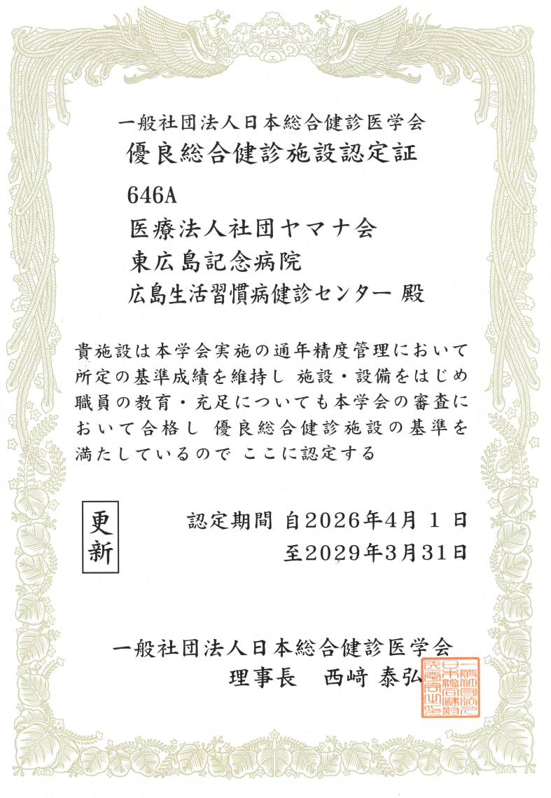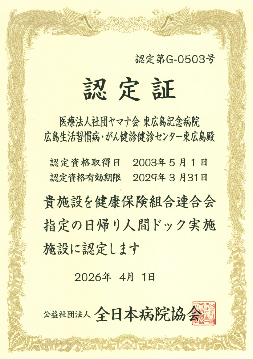 © 広島生活習慣病・がん健診センター東広島. All rights reserved. 当院はISO27001(ISMS)の認定施設です。≪認定JP18/080511≫